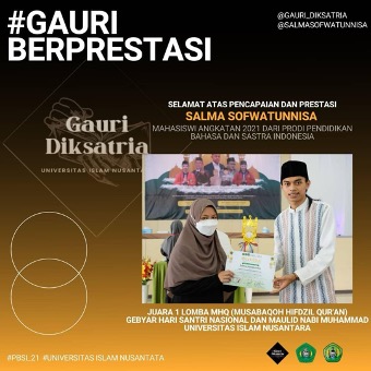 ![]() | Salma Sofwatunnisa | Juara 1 Lomba MHQ (Musabaqoh Hifdzil Qur’an) |