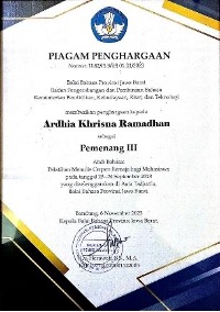 ![]() | Ardhia Khrisna Ramadhan | ● Juara 3 menulis cerpen di Balai Bahasa Jawa Barat ● Finalis bakat terbaik Duta Bahasa 2024 |
